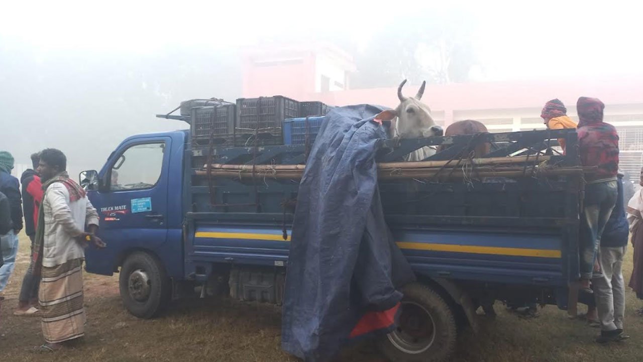বোয়ালমারী উপজেলার ময়না ইউনিয়নের হাটখোলারচর বটতলা এলাকায় দিয়ে পিকআপটিতে দুইটি গরু ত্রিপল দিয়ে ঢেকে নিয়ে যাচ্ছিলেন। গরু ত্রিপল দিয়ে ঢাকা দেখে স্থানীয়দের সন্দেহ হলে তারা ধাওয়া করে গৌরিপুর এলাকায় পিকআপটি আটকে ফেলে।